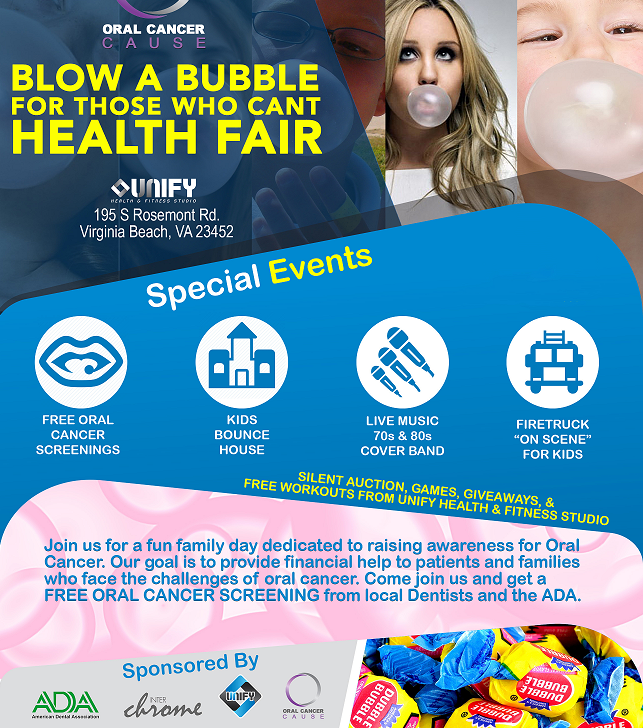 Inter-Chrome has partnered with several local and national organizations in the realm of oral cancer awareness, one of which is a local fitness establishment, Unify, and another is the Oral Cancer Cause, headed by our friend Linda Miles.